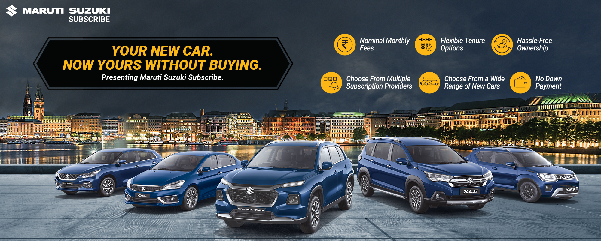 Maruti Suzuki Subscribe enables all customers to enjoy driving their preferred Maruti Suzuki cars without having to deal with all the financial responsibilities that come with owning a car.All you need to do is opt for a monthly subscription plan at a fixed monthly fee, which includes the routine maintenance and insurance costs, and choose a flexible tenure. At B M Autolink in, , Gandhidham, all Hatchback, Sedan, SUV, the MUV models line-up includes Baleno, Invicto, EVitara, Jimny, Ciaz, Ignis, Fronx, Grand Vitara, XL6. Here, you will enjoy Maruti Suzuki Subscribe benefits such as: